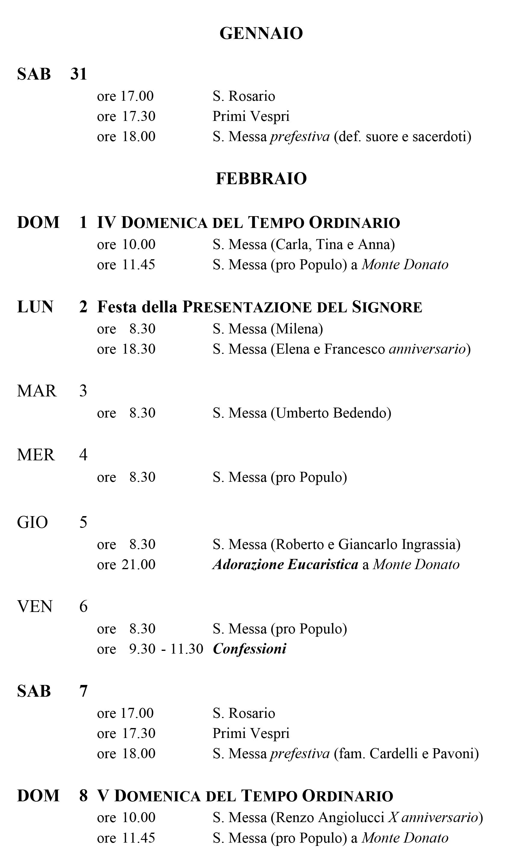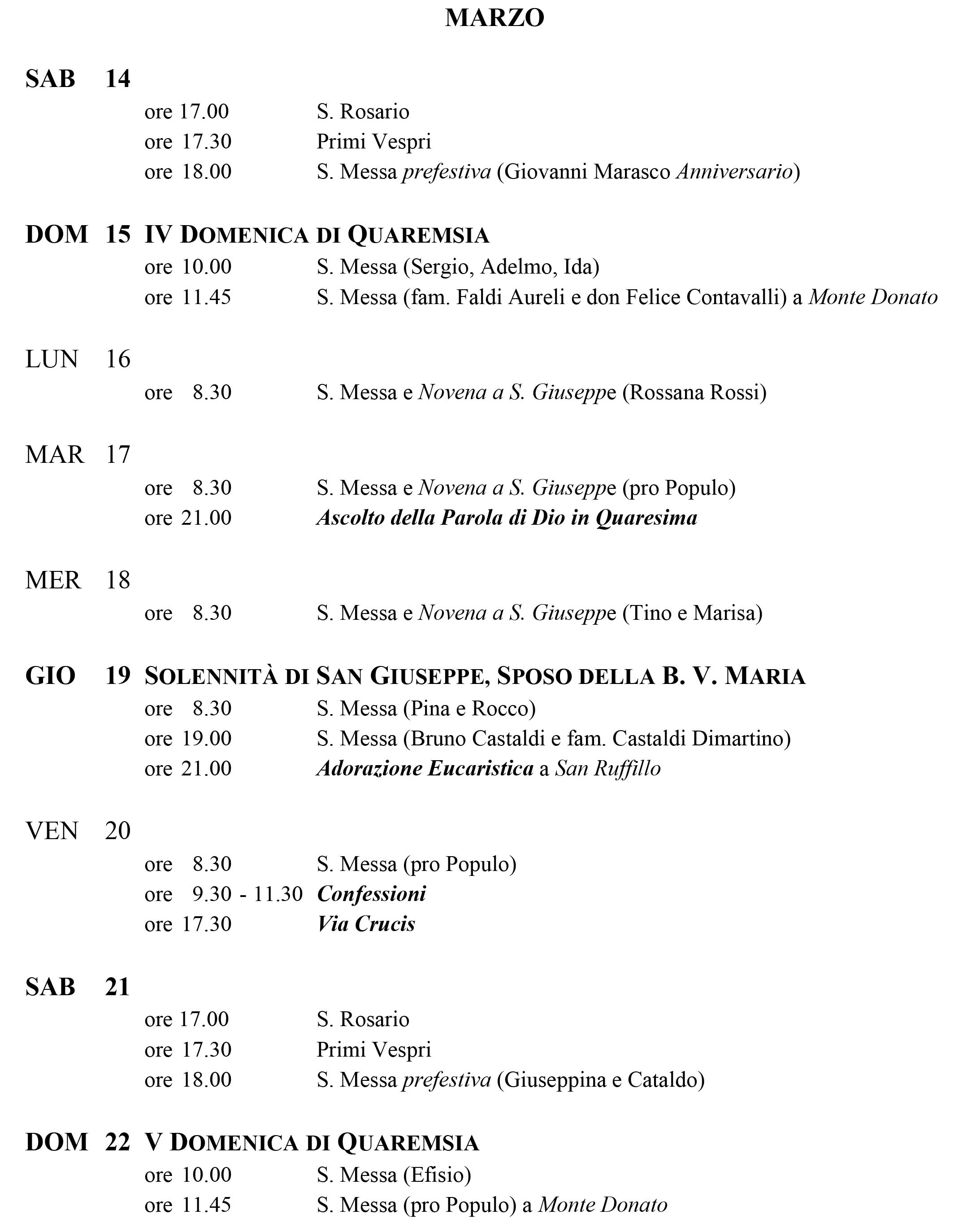 AGENDA SETTIMANALE delle Parrocchiedella B. V. del Carmine di Monte Donato e di San Ruffillo“Zona pastorale TOSCANA”