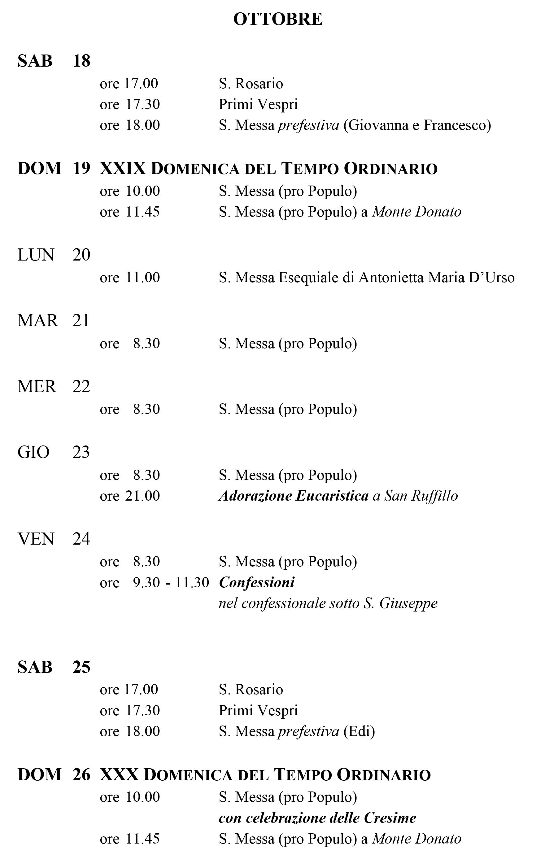 AGENDA SETTIMANALE delle Parrocchie